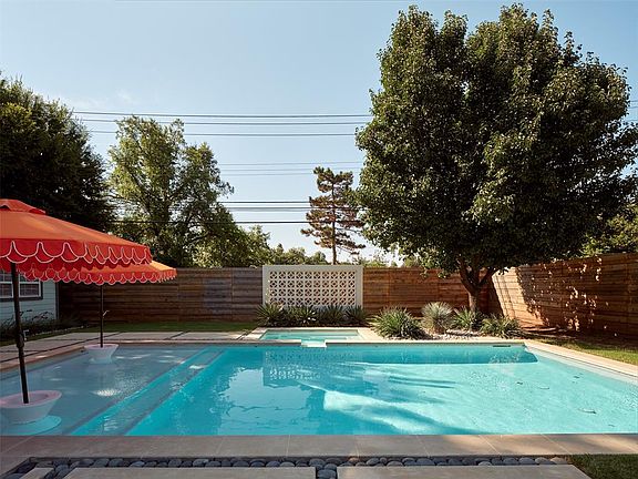 The expansive living room welcomes you with clean lines, exposed beams, and large windows that seamlessly blur the line between indoors and outdoors. Heritage-inspired accents like the stacked stone fireplace, terrazzo tile and classic breeze blocks pay homage to the era, while updated fixtures and finishes provide modern comfort. The kitchen is light-filled and efficient, blending sleek cabinetry, granite counters, and brass hardware to create a balance of utility and style. The bathrooms have been beautifully redone with imported Italian terrazzo tile, vintage vanities, and designer fixtures chosen with precision. Each space has been thoughtfully reimagined, from the gathering areas that invite conversation to the private retreats designed for relaxation. Last but certainly not least, the pool! Installed in 2022, and designed by Gumerson Blake, the separately zoned, heated pool and hot tub provide year-round relaxation and entertainment. The home is surrounded by lush landscaping and iconic architectural elements, offering a setting that is both striking and serene. This property is not just a home, but a statement...a rare opportunity to own a piece of classic design that has been carefully crafted for today’s lifestyle. The 396 ft.² outbuilding was previously used as a workshop and is not included in overall square footage. Don't let this one get away...schedule your showing today!