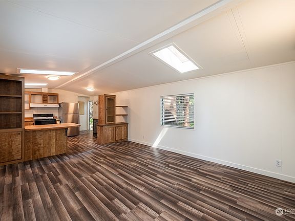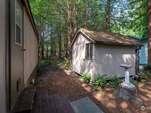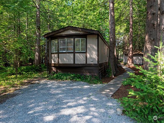This 2 bedroom, 1.75 bath home is located in Agate Bay Estates along the shores of Lake Whatcom with shared waterfront and dock. Recent updates to the home include a new roof, interior paint, and laminate flooring. Nice layout with the kitchen opening to the dining/living room in the center of the home and a bedroom on each end. Primary bedroom features an ensuite bath and walk in closet. The park is situated on 10.5 peaceful acres with 25 homes and offers many outdoor recreation opportunities. Water, sewer and garbage are included in the monthly dues. No dogs allowed.