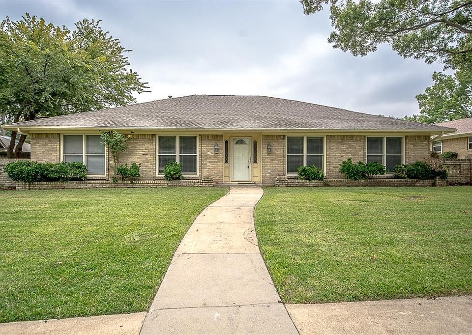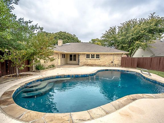 Come see this single-level Plano home and relax by the pool or under the covered patio. Step inside and you will see a living room with vaulted ceilings, wood wall panelling, a brick fireplace and built-in shelves and desk. In addition, the Master bedroom features an ensuite Master bathroom with a walk-in shower and a walk-in closet. Close to shops and dining at Prairie Creek Village-- see attached offer checklist. This home comes with a 30-day satisfaction guarantee, 180-point inspection, and one-year premium warranty. Terms and conditions apply.