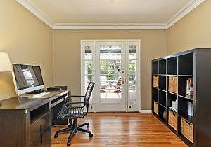 Unspoiled Traditional 2 bedroom/ 1.75 bathroom with the perfect blend of updates and original character. Brick walkway leads to formal entry opening to living room with brick-front fireplace and original detailed crown molding. Rear dining room (currently used as office) overlooks and opens to rear deck and tranquil beautifully landscaped backyard including mature trees and spacious grassy yard. Sun-filled kitchen with built-in breakfast nook and rear laundry area opening to enclosed bonus sunroom with backyard access. Rear master suite with 2 custom built closets and attached 3/4 bath with granite countertop. Completely remodeled full bath with solar light includes subway tile and ceasarstone finishes with separate bath and shower. Additional features include central a/c/ heat, plantation shutters, recessed lighting, Attached 2-car garage with auto door. Ideal mid-block location in close proximity to Westside Pavilion Mall and theaters, Pico retail and restaurants. Overland Avenue Elementary.