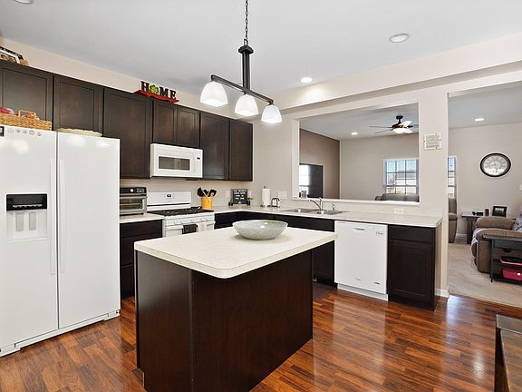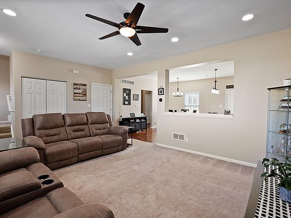 This 3 bedroom 3 bathroom 8 year young house in Crown Point is ready for you to MOVE RIGHT IN and make it home. The main level is bright and open with a big living room open to the kitchen (appliances stay) and dining area. Powder room and little nook for a desk leads to the breezeway/laundry room to the 2 car garage. Garage has shelves built and ready for storage! Upstairs you'll find 3 bedrooms including a primary suite with a full bathroom and walk in closet. An additional full bathroom rounds out that level. The basement has a huge finished bonus room for entertaining, a gym, or whatever your heart desires. Roughed in for a 4th bathroom, the possibilities are endless. The home is fully equipped with fiber optics to each room for the fastest internet speed. Great for gaming or working from home. Outside the house has permanent Christmas lights to save you from climbing a ladder! Perfectly located in the neighborhood. This home is near shopping, restaurants, hospitals, the fairgrounds, and a short drive to I65.