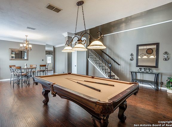 PROFESSIONAL APPRAISAL IS IN ($425,000) *EASY TO SHOW* NOTICE All the Upgrades (in MLS Additional Info) This Home sits in the Private Gated Community on a Cul-de-Sac & Houses rarely come on the Market in the WOODLAND OAKS Subdivision. Call to SHOW & see this 2 Story | 4 Bdrm | 3 Bath Home. Convenient to Randolph AFB, Fort Sam Houston, New Braunfels, and San Antonio! LOOK @ MLS: 1604106 for Home with Similar Floorplan SOLD sans Pool. If you are looking for indoor and outdoor entertainment space - this one is for you! The Fireplace opens to the downstairs Living room with Wine Bar & Wine Fridge, has Open Floor Plan w/ Breakfast area & Kitchen w/ island, Stainless Steel appliances, ample Cabinet space, and Granite countertops. At the top of the stairs, you are welcomed by an enormous Master suite with a sitting area, Garden Tub spa with separate shower, and Walk-in closet. Three additional large bedrooms upstairs have great closet space and share a large second full bath are separated by a 2nd Living area upstairs that can be used as a Game Room / Craft Room / Office. The 3rd Bathroom is downstairs opposite the Laundry Room by the Garage. This "Great Lot" has an Oversized Backyard with a flagstone outdoor firepit and is surrounded by Mature large oaks. Located off IH-35 and 3009 aka. Roy Richard Dr. in the Schertz/Cibolo area. There are Only 40+ Homes in this Neighborhood. The Pool Table (Entertain in Family Room) is Negotiable but Your Buyer needs to make an Offer 1st! Ask for the Gate Code. Safe place for Kids on Bikes!