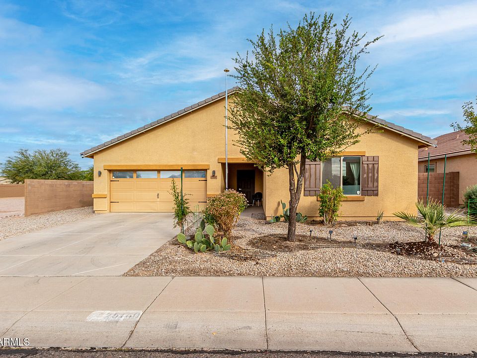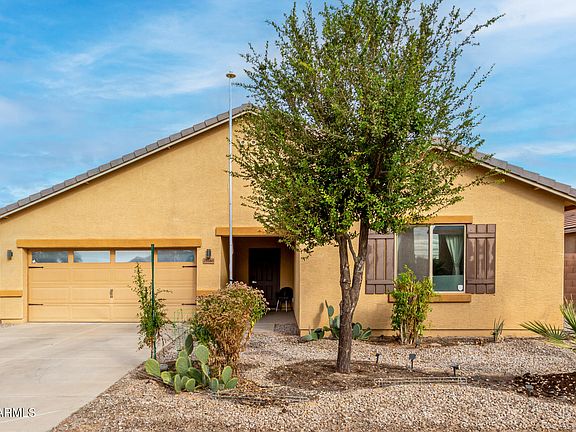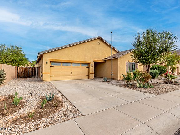 This inviting 4-bedroom, 2-bath home nestled in the Blue Hills neighborhood in Buckeye features an open, bright, and welcoming layout throughout. The spacious kitchen is perfect for cooking and entertaining, offering GE stainless steel appliances, dark rich cabinets, granite countertops, a cozy breakfast nook, and a generous walk-in pantry, and it opens to the main living space. The primary suite includes its own ensuite bathroom and a large walk-in closet for ample storage. Outside, you'll find a 2-car garage, RV gate, and a backyard pool—currently drained for the winter but fully functional when filled. With the home situated next to a common area, you'll enjoy added privacy and no neighbor to the west. A fantastic property with comfort and convenience in every room!
