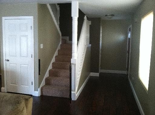 Don't miss out on this wonderful End unit 2 story townhouse in Manhattan. 3 bedrooms, 2.5 baths & 2 car garage. Backs up to nice tree line. Awesome kitchen with Granite tops, tile back splash & Stainless Steel appliances. Gorgeous Wood flooring, white 6 panel doors & white trim thru-out. Concrete Driveway and patio. Custom bathroom with tiled walls & upgraded vanity. Short Sale Subject to Bank Approval.