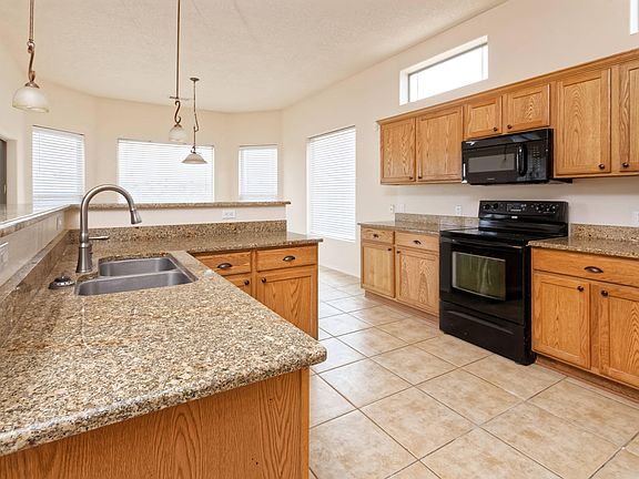 Wonderful, open, single story Wallen floor plan. Half acre lot with arroyo and Sandia views from the back yard. Granite kitchen counters, spacious pantry and french door refrigerator. 3 bedrooms plus an office. Romantic gas log fireplace in Master Suite. Tandem 3 car garage. lots of features and space for the price!