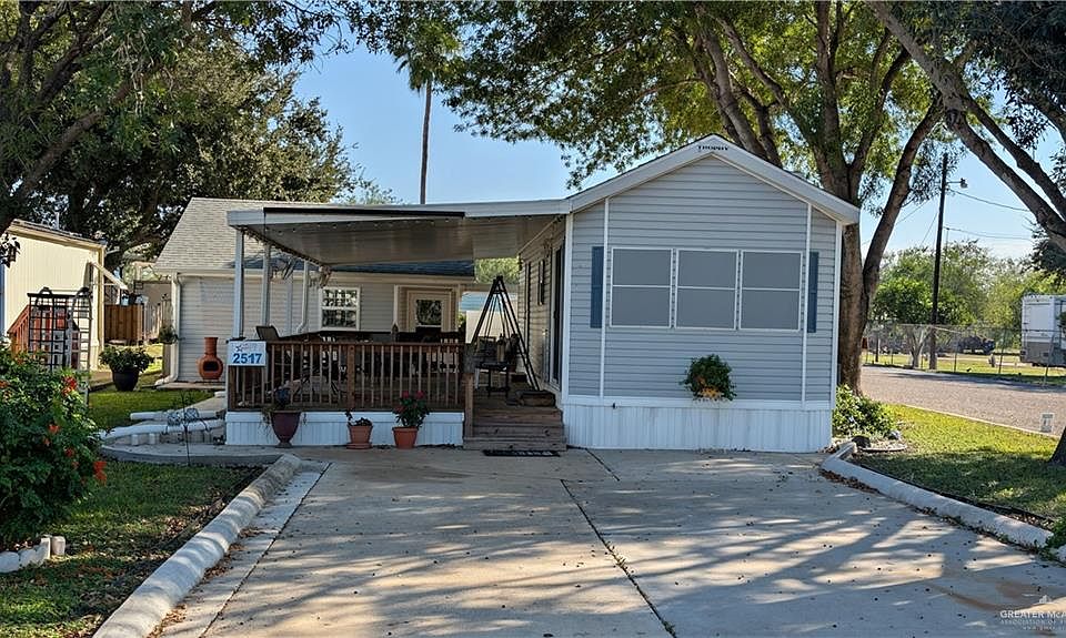Make the move today to this charming home in the desirable 55+ Community of Green Gate Grove offering comfort in a peaceful setting on a spacious corner lot (1 3/4 lots). Main home has recently been remodeled with new stainless steel appliances and features large attached deck, 1 bedroom, 1 bath, kitchen, living and dining areas. The Texas room (detached guest house) also offers full kitchen, and full bathroom with washer and dryer. All furnishings and appliances are included. The property offers plenty of parking space with 2 double driveways, with one covered driveway at the side of the property. Enjoy access to a variety of community amenities designed for an active lifestyle including a heated salt water pool and spa, billiards, shuffleboard, and a well stocked library. Located close to Bentsen-Rio Grande Valley State Park and the National Butterfly Center.