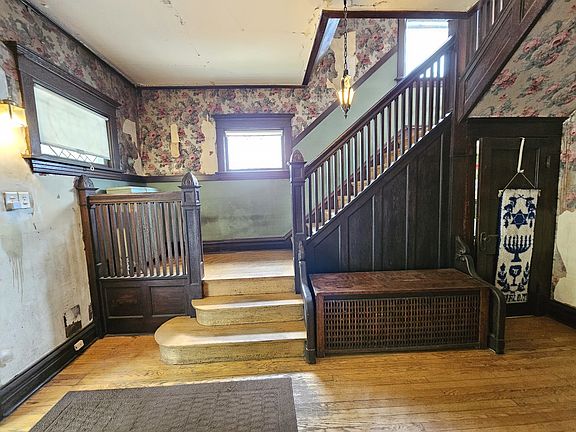 This historic Logan Square Victorian on one of the most idyllic tree-lined streets in the city, priced reasonably and sitting cozily on a huge 40ft wide lot with side driveway to a huge 2-car garage, is beyond special. It's got a perfect floor plan, with 3 bedrooms plus 2 side rooms for offices, guests or a primary bathroom, another staircase to a 900sqft attic with a soaring 12 foot peak that's ready for a sprawling 3rd floor bedroom (or 2) and yet another bathroom. Hardwood is everywhere, among the floors, stairs, rails and foyer bench, not to mention beautiful hardwood beams in the living room. The home is uniquely spacious, with nearly 3,000 sqft over 3 floors, plus the 4th floor attic, and tall ceilings everywhere. The basement is its own particular joy, open and ready for completion, and no need to dig given the uncommon existing 7'8" ceiling. Renovate lightly, move in and enjoy, or go bigger. Options abound!