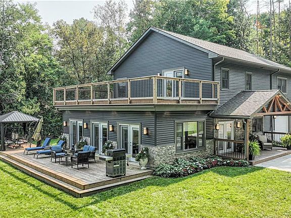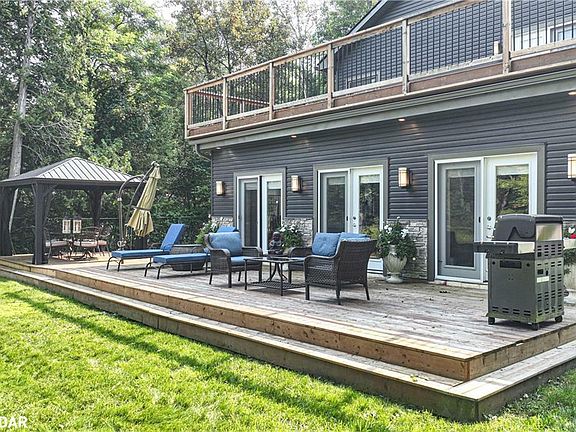 Your waterfront dream home is ready. Custom built in 2019. Imagine waking up in your 300 sq. ft. Primary Bedroom overlooking to Severn River and walking out to your 577 sq. ft. deck for morning coffee. This house has everything from top to bottom even a dog wash in double garage. 9' ceilings through out add to the open concept design of this Home. Main floor with a covered front porch and 3 patio doors to walk out to your 600 sq. ft. deck beside the Severn River. Main level has in floor heat along with propane forced air furnace, fireplaceand central A/C. Located 20 minutes from Orillia and Costco and a hour and 45 minutes from the GTA. Kitchen has lots of cupboards and a large island with white quartz countertops. Direct access to Sparrow Lake and the Trent Severn Canal system. Spring is coming. Enjoy life on the river.