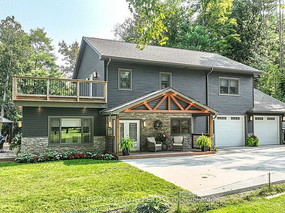 Your waterfront dream home is ready. Custom built in 2019. Imagine waking up in your 300 sq. ft. Primary Bedroom overlooking to Severn River and walking out to your 577 sq. ft. deck for morning coffee. This house has everything from top to bottom even a dog wash in double garage. 9' ceilings through out add to the open concept design of this Home. Main floor with a covered front porch and 3 patio doors to walk out to your 600 sq. ft. deck beside the Severn river. Main level has in floor heat along with propane forced air furnace, fireplaceand central A/C. Located 20 minutes from Orillia and Costco and a hour and 45 minutes from the GTA. Kitchen has lots of cupboards and a large island with white quartz countertops. This can be your home to enjoy Christmas in this year. Direct access to Sparrow Lake and the Trent Severn Canal system.
