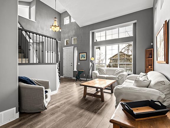 Nestled in sought-after Westwood Plateau, this beautifully maintained home backs onto a tranquil green space, offering privacy and stunning sunsets from your living room. Featuring 5 bedrooms and 4 bathrooms, the main level boasts a bright living room with 17-ft vaulted ceilings, a stylish kitchen with stainless steel appliances, marble backsplash, granite counters, and a cozy family room with gas fireplace. Upstairs offers 3 spacious bedrooms, while the basement features a large rec room, 2 bedrooms, and a full bath—perfect for guests, teens, or extended family. Complete with a 2-car garage, this home blends elegance, comfort, and natural beauty.