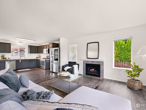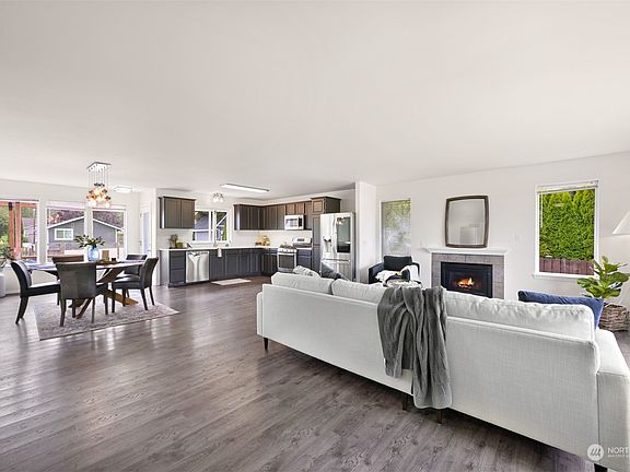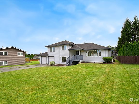 Welcome to this bright and spacious 4-bedroom, 2.75-bathroom home, boasting 2,418 square feet of beautifully designed living space. Step inside to find new carpet and fresh paint throughout, creating a bright and inviting atmosphere. The large kitchen/living room is perfect for gatherings, while the oversized bonus room offers endless possibilities for entertainment or relaxation. The updated primary bathroom adds a touch of luxury. Attached to the home is a large 2 car garage with plenty of room for toys and tools. Enjoy the flat, sunny backyard with views of Mt. Baker, raised garden beds and an inviting porch. Situated in a quiet cul-de-sac this home is a perfect blend of comfort and style, ready for you to move in and make it your own!