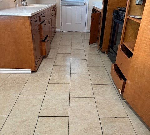 Submit application with credit report . New garage door with opener. Nice kitchen with plenty of cabinets. Beautiful wood flooring throughout the house.