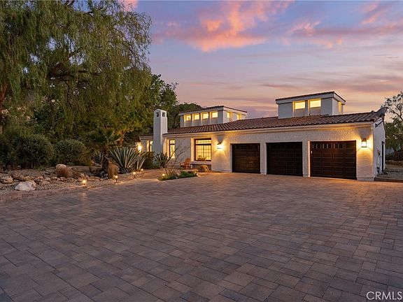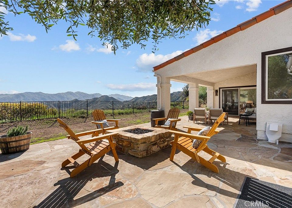 Discover your dream Mediterranean oasis! This stunning 4-bedroom, 4-bath residence boasts unobstructed, breathtaking views of the Santa Monica Mountains and is nestled on over 4 acres of idyllic land, offering nearly 3,500 square feet of luxurious living space. Experience ultimate privacy and serenity, enhanced by a gated entrance, a beautifully designed custom paver driveway, and the tranquil sounds of a gently bubbling creek. Freshly painted inside and out, the interior features soaring ceilings and expansive picture windows that frame the incredible views, inviting abundant natural light to flood the space. This exquisite home showcases breathtaking European Oak Hardwood floors that evoke a sense of warmth and comfort. The elegant formal living room is anchored by a large fireplace, creating an inviting atmosphere for relaxation and entertaining. The dining room is perfectly positioned to offer stunning mountain views, making it the ultimate setting for memorable gatherings. The gourmet chef’s kitchen is a culinary delight, featuring a Sub Zero refrigerator, a professional-grade Viking cooktop, double wall ovens, and a spacious walk-in pantry that caters to all your culinary needs. The main bedroom suite is a true sanctuary, boasting soaring ceilings, two generous walk-in closets, and a private patio where you can unwind with enchanting sunset vistas. Additional highlights include custom-built bookshelves, oversized bedrooms with tailored closets, and a 3-car garage with durable epoxy floors and ample shelving for all your storage needs. A newly installed fence enhances privacy and security, completing this perfect retreat. Discover the exceptional charm of this property, located just a quick 10-minute drive from the award-winning LVUSD school district. Zoned for horses, it offers an exciting canvas for your dreams—imagine building horse stables, an ADU, a refreshing pool, or a welcoming guest house. With a dedicated storage unit included, the possibilities are limited only by your imagination amidst the stunning raw landscape. Embrace the potential and create your ideal retreat!
