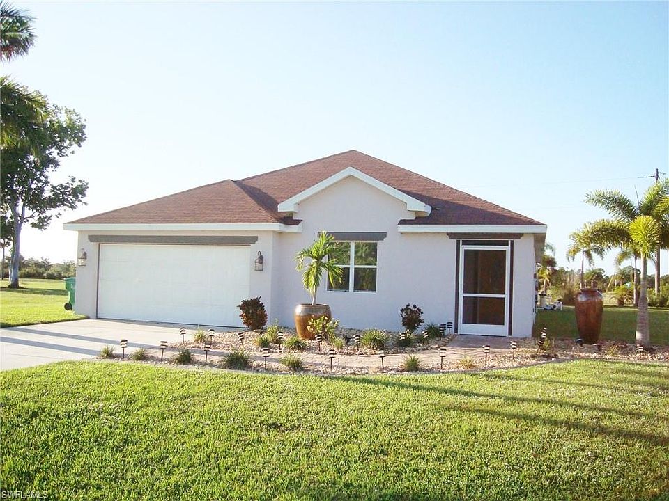 Fabulous Panoramic Sunsets for your forever home! Professionally landscaped, custom pool with fiber optic lights, bubblers, sun shelf and beautiful pavers, nothing spared, just a picture out of a magazine. Home features four bedrooms and two full baths, new A/C, spacious family room, large master bedroom, master bath has a soaking tub plus a step-in shower, walk-in closet. Kitchen features new stainless steel appliances. Yard has automatic an in ground sprinkler system. Located South of Zemel Road and on the east side of Burnt Store Road, near Burnt Store Marina with golf courses, restaurants and marina, this is a lovely community just waiting for you to explore.