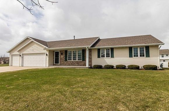 Demand Bellevue location! Covered front porch leads to open concept & great room w/cathedral ceiling & fireplace. Sun drench applianced kitchen w/skylight, snack counter, custom cabinets, newer tile backsplash & flooring + patio doors to sprawling back yard. Master suite w/walk-in closet & private bath. 1st floor laundry. Full unspoiled LL. Oversized 3 car garage, 1/3 acre landscaped setting.