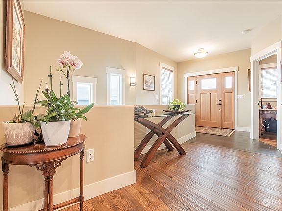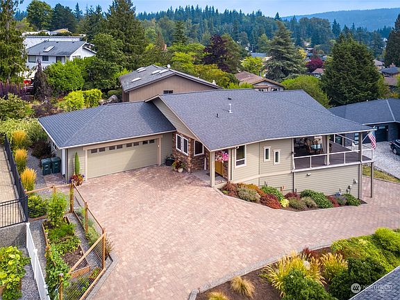 Beautiful Custom built home w/2 separate living spaces. Main home on main level complete w/a primary & secondary bdrm & 2 baths, very attractive kitchen w/generous brkfst bar, barn door walk-in pantry, gas frplce, expansive great room brightened by full wall of view inspired windows & nice sized covered porch & wrap around deck, laundry and an oversized dbl car garage. Lower level living has another beautiful kitchen, a 2nd primary bdrm w/full bath, second bedroom & additional 3/4 bath, laundry rm, gas frplce, no step access & single garage. Nicely located in a small desirable cozy home community featuring neighborhood sports court close to Lk. Whatcom, trails, schools & the shopping, professional & medical services at Barkley Village.