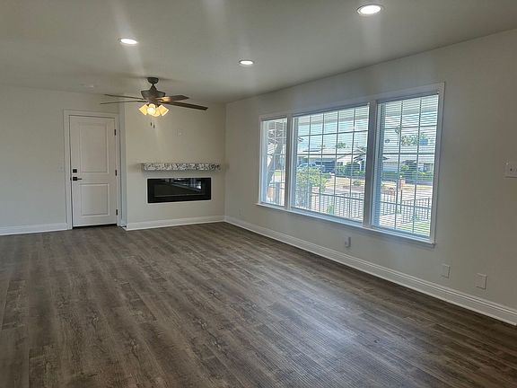 Drive-through garageElectric fireplaceOutdoor fenced patioKitchen islandOpen floorplanCentral ac and heating