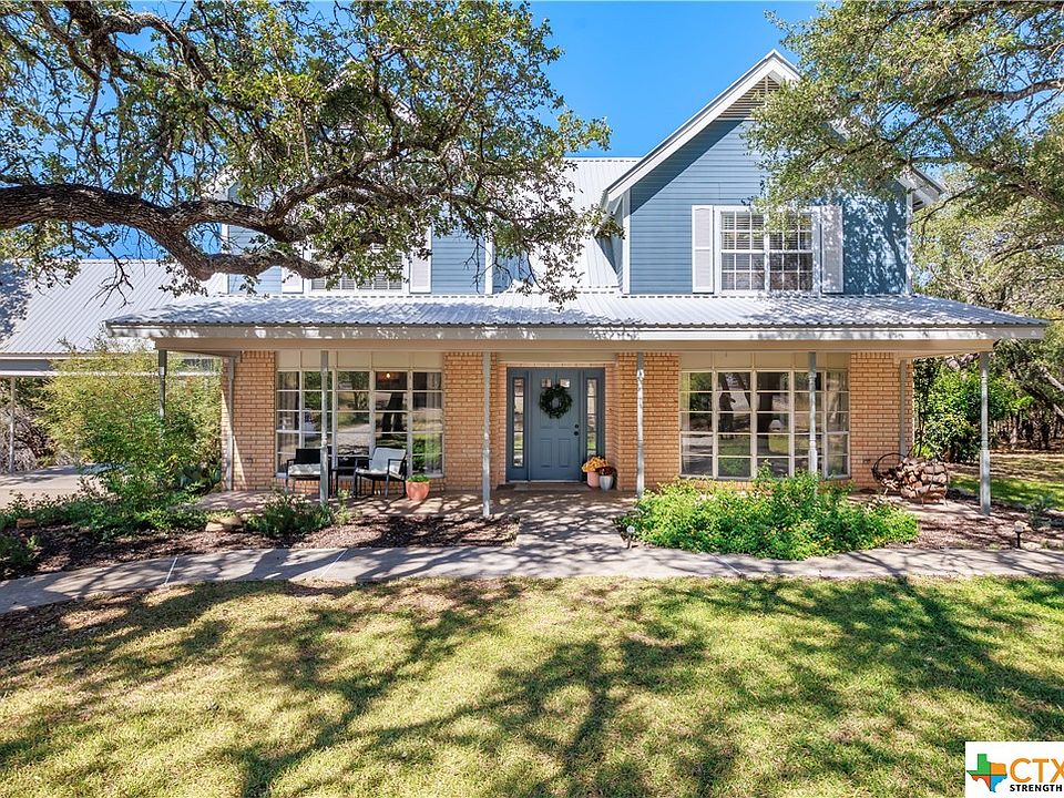 With over 3000 square feet of space, this home has a lot to offer. As you step inside, you'll find a spacious living room with a cozy wood-burning fireplace and large bay windows that let in plenty of natural light. The kitchen has been thoughtfully updated and includes a roomy walk-in pantry, carefully selected details, and a space for a dining table or a breakfast nook, depending on your preference. From here, you have a lovely view of the back deck, in-ground pool, and the surrounding natural landscape. The generously sized owner's suite is conveniently located on the main level, along with a laundry room that has space for an extra refrigerator. Throughout the home are plenty of storage closets, spacious bedrooms, as well as a walk in attic space. You'll also find a brightly lit flex room that can be utilized as a homeschool room, office, formal dining room or anything you desire. Outside, you can enjoy both front and back covered porches that overlook the acreage and pool. In the back acreage, there's a second carport, a spacious free-standing metal lean-to with electricity, greenhouse, and a fenced garden that's just waiting for some green thumbs. This property offers a peaceful and welcoming retreat in the Texas Hill Country, blending modern comforts with a touch of natural serenity.