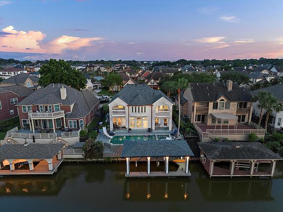WATERFRONT LIVING WITH ALL THE AMENITIES YOU COULD ASK FOR INCLUDING SALTWATER POOL W/ WATERSLIDE, SPA, BOAT HOUSE WITH LIFT, 3 CAR GARAGE & MORE ALL ON A QUIET CUL-DE-SAC! THE INTERIOR OFFERS AN OPEN FLOORPLAN WITH WOOD FLOORS, LARGE DINING ROOM W/ ARCHWAYS & CROWN MOLDING, DEN W/ CAST STONE FIREPLACE, BUILT-IN SPEAKERS & ENTERTAINMENT CENTER, ISLAND KITCHEN W/ 6 BURNER COOKTOP, CHEF'S DESK, SS DBL OVENS & WARMING DRAWER, AND OFFICE & BREAKFAST ROOM W/ PATIO ACCESS. THE 2ND LEVEL FEATURES A SPACIOUS PRIMARY SUITE W/ PRIVATE BALCONY & BEAUTIFUL BATH W/ HIS/HER VANITIES, WHIRLPOOL TUB & WALK-IN SHOWER. GUESTS WILL ENJOY 2 SPARE BEDROOMS, A 2ND PRIMARY SUITE WITH SITTING AREA AND UPDATED FULL BATH W/ WALK-IN SHOWER. THE UPDATES CONTINUE WITH DOUBLE PANE WINDOWS, ROOF IN 2020, TANKLESS WATER HEATER, AC DUCTS IN 2021 & POOL HEATER IN 2020. INCREDIBLE NEIGHBORHOOD AMENITIES ARE JUST AROUND THE CORNER INCLUDING BOAT RAMP, TENNIS & VOLLEYBALL COURTS, JOGGING PATH & MORE! DON'T MISS OUT!