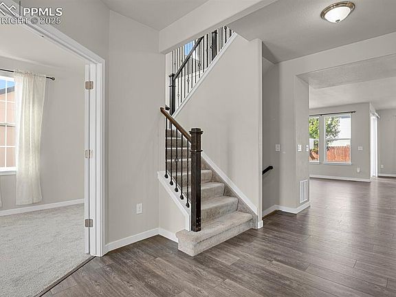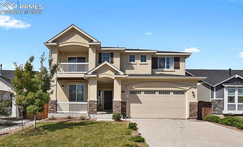 Welcome to 2518 Grand Prix Ct, a beautifully maintained 5-bedroom, 4-bath home located in the highly sought-after Hannah Ridge at Feathergrass community within District 49. Built in 2018, this home offers nearly 3,700 finished square feet of modern, comfortable living with an open floor plan and stylish upgrades throughout. Step inside to find a bright, spacious layout with abundant natural light, stainless steel appliances, and a large kitchen island perfect for gatherings. The open-concept living and dining areas flow seamlessly to the private backyard, ideal for entertaining or relaxing after a long day. Upstairs, the primary suite provides a peaceful retreat with a luxurious en-suite bath and generous walk-in closet. With four additional bedrooms, there’s plenty of space for family, guests, or a home office. The finished basement adds even more versatility — perfect for a media room, gym, or guest suite. Enjoy being within walking distance to a neighborhood dog park and scenic walking trails, offering the perfect balance of community and outdoor recreation. The two-car attached garage, front porch, and low-maintenance yard add to the home’s appeal. Located just minutes from shopping, dining, schools, and Powers Corridor, this move-in-ready home delivers the ideal blend of space, convenience, and Colorado lifestyle.