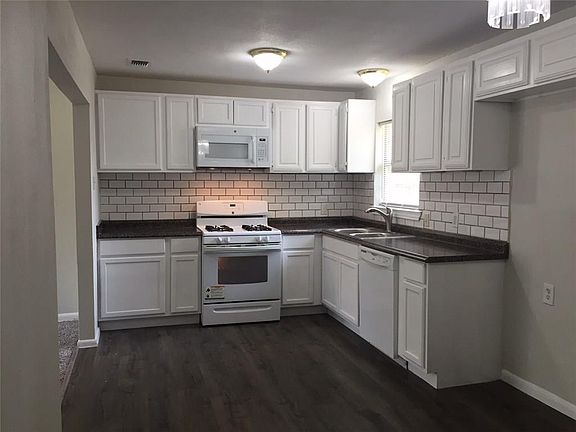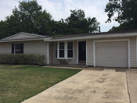 Remodeled bath with beautiful tile, niche and new vanity, new flooring throughout, fresh interior paint, blinds throughout, kitchen has new countertops, microwave, and backsplash. This home has all new stylish colors! Large backyard with wood fence and storage shed. Front has extra poured concrete for additional parking with one car garage. Full size washer and dryer area. Excellent location close to Eastfield College and easy access to Interstate 30 and 80. Minutes from downtown.