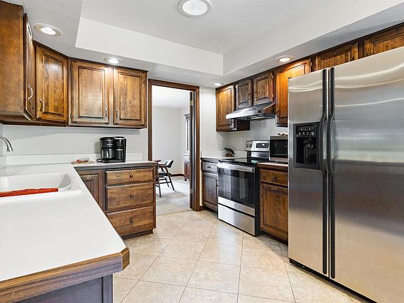 Family room with fireplaceGarage with epoxy floorFirst floor laundrySpacious eating areaPrivate wooded rear yardNewer drivewayKitchen with tile flooring