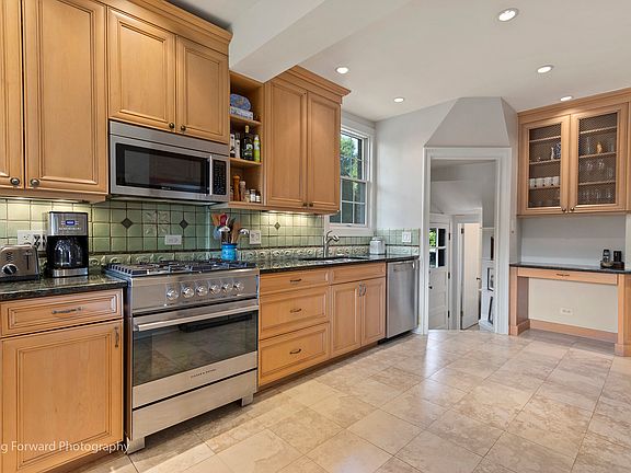 Move right in to this architecturally significant home! Modern updates blend seamlessly with the home's vintage charm. Renovated Kitchen and Baths. Living room leads to formal dining room via arched doorway. The chef's kitchen with maple cabinets, Arts & Crafts tile backsplash, all stainless steel appliances including new Fisher & Paykel gas range and a large breakfast bar is a great place to hang out. Adjacent is the cozy family room with fireplace with gas logs. A sliding door leads to the fenced in yard and new paver patio - great for hanging out. Three bedrooms on the second floor with updated hall bath with mosaic tile. The primary suite has a large walk in closet, ensuite bath with oversized jacuzzi tub and separate shower. Completely finished basement is used as an office/4th bedroom. Separate laundry room with epoxy floor and washer/Dryer (2023) plus additional storage. All new windows in 2024 (except front bay). H2O 2024. A/C 2019. Freshly painted. New front stairs. Surge protector. Added gutters to garage roof. Roof and mechanicals 2015. Wonderful neighborhood! Within walking distance to award winning Willard School, Bent Park, shopping, restaurants, tennis courts, and mass transit. Don't miss this charming home, which perfectly compliments your lifestyle. This gem could be yours! Come see for yourself!