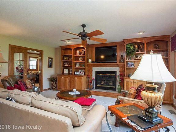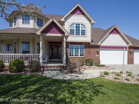 One of a kind! VICTORIAN STYLE, 2 story with 5 bedrooms and 5 baths on choice lot (.646 of an acre) in Carlson Ridge Estates. Outstanding street appeal features fresh paint in 2015, and covered front porch. Backyard is fenced, includes a deck and fire pit area for those cool evenings. A 14x14 (3 season) sun porch skirts your eat-in-kitchen. Kitchen has oak cabinets with granite and new sink in 2015. Mechanics dream 3 car garage with 30 ft. 3rd stall, cabinets, sink, and furnace and 100 amp service. Enjoy a matching 14x14 shed (original cost $7000). Family room off the kitchen features gas fireplace trimmed with oak cabinets. Lower level has a corn burner. House is wired for Cat-5 system. More features are: central vac, security, and 2 laundry areas, finished lower level. This property shows Pride of Ownership. Meticulously maintained. Located minutes from new Hy-Vee and close to everything Ankeny has to offer.