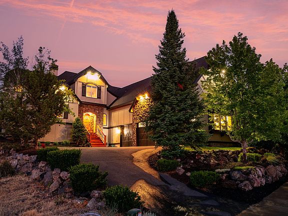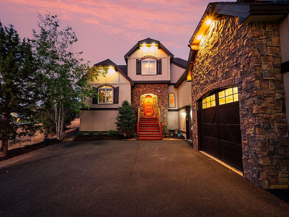 Originally built as a show home by Travis Kohler, the 3,646 ft German tudor home rests proudly on Majestic Ridge, boasting an attention to detail at every wall. Custom cabinetry, crown molding, and built-ins adorn the gourmet kitchen featuring a double island, Bertazzoni range, teak and granite countertops. Cozy up with your family next to the wood burning fireplace under elegant, vaulted ceilings and surrounded by craftsman wainscotting. Enjoy custom tile, dual vanities, dual shower heads in the wrap around shower, and a bonus room off of the primary, leading out to the backyard's covered patio. Don't get lost behind the hidden, built in bookshelf leading to a full-sized media room with projector, screen, and theater seating, and additional room. Unrestricted storage in the fully finished, deep, 3-car garage. Each space in this magnificent home is perfectly curated; there is so much more to see for yourself. Ask a realtor today for the property features list and to schedule a tour!