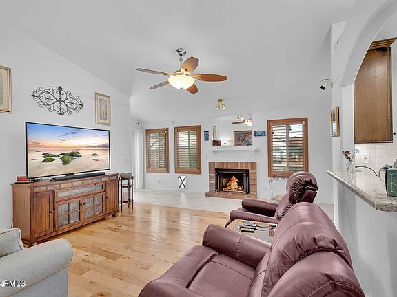 Pristine home in PRIME Chandler location is MOVE IN READY! Welcome to this very well maintained home in a highly sought after Chandler neighborhood located on a corner lot. Within a mile is the 101, Chandler Fashion Shopping for entertainment, shopping & outings! This spotless property showcases thoughtful upgrades throughout the home. Custom real wood blinds throughout home, wood flooring and tile throughout home, dual payne windows redone (2016), new A/C (2016), 75 gallon water heater & OWNED SOLAR! The kitchen beams with elegance & beauty! Stunning light granite countertops, new granite sink, custom cabinets with soft close features. Spacious bedrooms! Fireplace on remote & a low maintenance yard featuring turf & newly planted red push pistache trees!