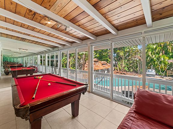 Basketball arcadePool tableWaterfront homeLush landscaping