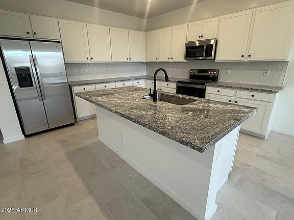 This 4-bedroom, 3-bath home with a flex room is perfect for a mother-in-law suite. It includes interior doors 8' doors, Smart Home package, ceiling fan prewires in all bedrooms and great room too. Spacious kitchen has large island; pendant light prewires and a walk-in pantry. The chef's kitchen features Burlap cabinets, Nordic Sand backsplash, white quartz counters, large island, and GE stainless appliances. This beautiful home is a must see! Carpet in bedrooms and closets only, 12''x24'' tile everywhere else! ALL appliances included fridge/washer-dryer and window blinds. This beautiful home is a must see! Some pictures are renderings or pictures of the model.