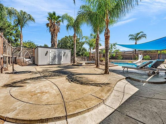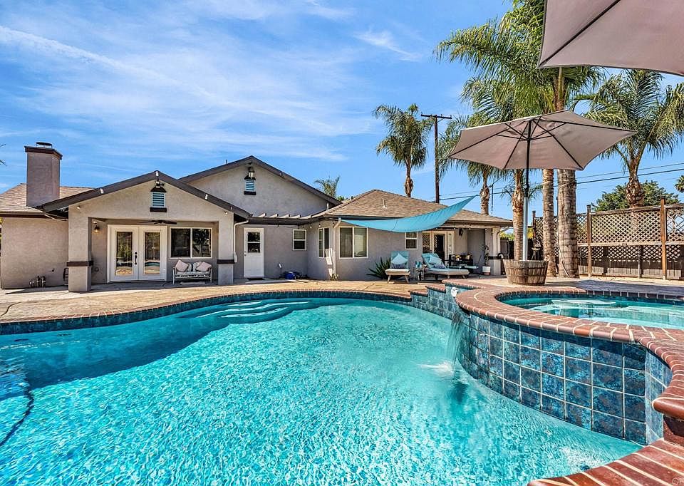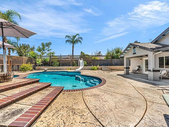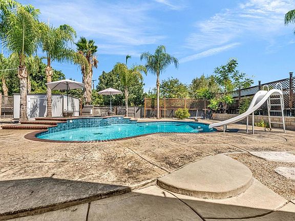RESORT -STYLE LVING ON .35 ACRE! Welcome to your own private retreat! This stunning home sits on over a third of an acre and is designed for comfort, entertainment, and true California living. Outdoor Oasis, sparkling pool with slide, Hot tub, jumping board, water fountain and two shell waterspouts. Stamped concrete. Pool: custom art designs decorative touches throughout. Plus, pool lights. Outdoor: Patio by Principal Suite: boats, fan, tv hookup, surround system, refreshing water mist Perfect for entertaining. Outlet for holiday lights all around the house. 5 bedrooms, including the two primary suites. The main suite features French door to the pool, walk-in-closet, luxurious bath with jetted tub, dual vanities, make -up vanity. Suite boats an elegant architectural ceiling design. Fans, recessed lighting and its own Private entrance. Second Suite boats its own bathroom with tub & shower and a private entrance. Detached garage can be converted to an ADU. RV or Boat Parking. Iron gate. 14 Queen Palms. Back yard, Retaining wall. Dog run gates. 18 security camaras will stay. Kitchen, many outlets never suffer looking for one. Plenty of storage, space for a trash compactor, New Kitchen water faucet, double dishwasher, Stainless steel appliances. Two fireplaces, one in dining room and second in the beautiful living room, Spacious, High ceilings, fans, surround system connection. Gas fireplace, Pergo floors, Double pane French doors, with blinds. Most window have shutter window covers. Water heater new with overflow tank. 37 PAID, solar panels. Seller upgraded the pool. Chimneys serviced and repair gas connections, house boast drainage all around the property. New shower spout and shower head in principle suite. Two AC units and two control for each section of the house. Rain Gutters. Many other details that you need to come and see in your future beautiful home.