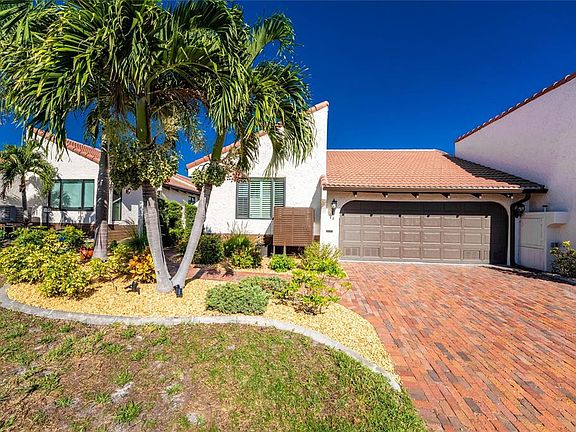 Welcome to the bright and airy 2164 sq ft Villa #11, nestled at 25188 Marion Ave, in the desirable gated community of Emerald Pointe. This magnificent3-bedroom, 2.5-bathroom home offers breathtaking harbor views and is move-in ready, perfect for immediate occupancy. As you step inside this charming villa, you'll be greeted by updated flooring that flows throughout the living spaces. Plantation shutters impart an added touch of elegance, setting the tone for the entire villa. Turn left and you will see the great room with a breath taking view of Charlotte Harbor and your private pool. To the right, at the heart of the villa is a gourmet kitchen, adorned with sleek granite countertops and stainless steel appliances, ensuring a blissful cooking experience. Adjacent to the kitchen the spacious living room beckons relaxation and seamlessly blends into a 3rd bedroom/flex room, ideal for your tailored utilization. The separate dining room emanates a warm ambiance for delightful meals with family and friends. The oversized master bedroom offers a sanctuary of ultimate comfort and tranquility. A new roof, a new water heater, and new air conditioning system, and quiet/energy efficient impact windows ensure a worry-free living experience. Step outside into your own private paradise, featuring a heated saltwater in-ground pool (all new pump, heater, and filter in 2025) , perfect for unwinding on sun-drenched days. Villa #11 is the gift that keeps on giving as it includes deeded dock #10 and boat lift allowing for direct harbor access for boating enthusiasts. Parking will never be an issue with a spacious two-car garage at your disposal. This outstanding villa provides multiple amenities within the community as well; enjoy the luxury of 3 community pools, tennis courts, and the close proximity to the historic downtown Punta Gorda. Don’t miss this unparalleled opportunity to own a slice of Florida paradise. Contact us now to schedule a private tour and experience all that this stunning villa has to offer! All dimensions and specifications are deemed to be accurate and should be confirmed to the buyer or buy's agent satisfaction. The owner never used the lift which is inoperable and not warranted.