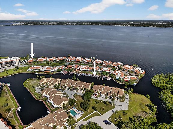 COMPLETELY RENOVATED AND TURNKEY! ASSIGNED DOCK AND BOAT SLIP #16 WITH 10,000 lb. LIFT ARE INCLUDED! ONE-OF-A-KIND OPPORTUNITY WITH FULL HARBOR VIEWS AND INSTANT SAILBOAT ACCESS TO CHARLOTTE HARBOR LEADING TO THE GULF! This unit offers an expansive outdoor entertaining area featuring approx. 70' of direct water frontage, large upper deck with plenty of room for soaking up the sun, enjoying amazing open water views plus lower deck for fishing and watching the dolphins stroll by. Beautiful 3 bed, 2 bath, 2-car garage villa features an open floor plan with soaring ceilings, an abundance of natural light, exposed beams, laminate flooring, remote control blackout blinds, triple slider to water views, wet bar and wood-burning fireplace in living room. Spacious eat-in-kitchen features ample wood cabinetry, granite counters, stainless appliances, center island with elegant lighting and breakfast bar. Bright and open primary suite offers slider access to gorgeous water views, walk-in closet and private bath with jetted tub and large walk-in shower. Guest bedroom offers access to outdoor nook with separate full guest bath plus third bedroom has slider access to front deck and turns into an office with Murphy bed. Additional special features include freshly painted interior and exterior, new roof, electric panel, garage door and decking plus paver driveway and inside laundry with deep sink and extra storage. Like-new outdoor grille and matching fridge plus JET SKI IS INCLUDED. MONTHLY HOA FEE INCLUDES EVERYTHING EXCEPT ELECTRIC. Emerald Pointe amenities include 24-hour security, 3 community pools, 5 tennis courts, pickleball courts, bocce ball, putting green, clubhouse with restaurant, social activities, gazebo and park on the Peace River plus RV and boat storage. Highly sought after waterfront community minutes from downtown historic Punta Gorda with fine dining, shopping, beautiful parks, arts, community events and entertainment. Don’t miss this opportunity. Call for your private showing today!