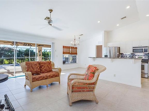 Pool Home! Relax on the front porch of this beautiful family pool home located adjacent to a canal and on a dead-end street with a fenced in yard! It's a 3-bedroom 2 bath split floor plan with a den, lots of new tiled floors, stainless steel appliances and a breakfast bar. Reverse osmosis system under the sink. There are new hard-wired smoke detectors including battery back up in the home, as well as a new coat of interior paint. Pool resurfaced last year and also new screens and a brand-new roof were installed in 2018! The 2 car attached garage has been upgraded to a hurricane grade door and storms shutters are provided for your peace of mind. Did we mention the extra large 9'x30' screened-in front porch? A short ride to Regional SW airport as well as the Red Sox spring training facility. New hot water heater 2018. Newer water system 2016. Sprinkler system.