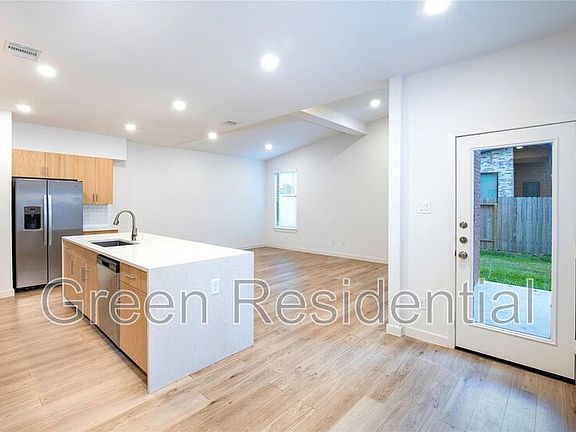 Modern Architecture Townhome ready for you now! First floor boasts bright open concept floor plan with high ceilings, gourmet kitchen with quartz waterfall island, featuring GE stainless appliances/fridge included, soft close cabinets and walk in pantry that overlooks the living room. Large utility room and half bath downstairs. All bedrooms High Ceilings! All bedrooms have crazy high ceiling! primary bath has 5ft walk in shower, two separate vanities and a walk-in closet. Luxury vinyl plank flooring throughout. Back yard is fenced has a patio and full yard sprinkler system. Amenities: pets allowed on case by case basis