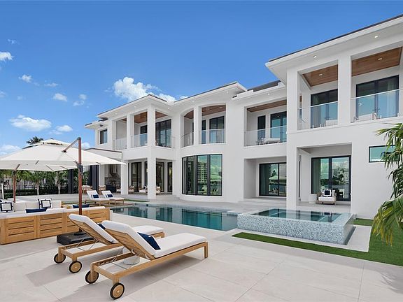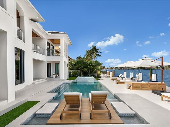 Completed in 2024 (major renovation), this luxury smart home in Seven Isles Las Olas offers wide views of 100 feet of prime waterfront. Featuring 8 beds, 7.2 baths (4 rooms currently designed as theater, gym, office with private balcony, and sitting room), state of the art gym with fitness flooring, and sitting room off the primary suite. Designed by Michael Gray, the interior boasts exotic woods, premium lighting, book-matched stones, and imported chandeliers. Custom staircase, elevator, and an authentic wine room with a marble vapor fireplace. Downsview Kitchen, full custom cabinetry, Wolf & Subzero appliance package. Expansive primary suite offers dual closets and baths. Outdoors, enjoy the large pool, spa, and summer kitchen, all with stunning views of Fort Lauderdale's Intracoastal.