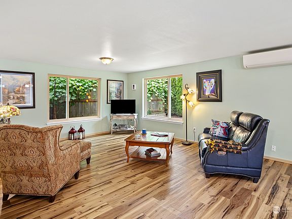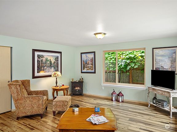 Rambler on nice corner lot! Handicapped accessible with no steps, even from entry & garage. ADA compliant; 36" wide doors, wide hall, lower switches, lever doorknobs. Wonderful, open floor plan features newer triple-pane Anderson windows, waterproof plank flooring throughout, ductless heat pump for AC. Kitchen features butcher block counters, farm sink, breakfast bar and all appliances. The spacious primary bedroom has bathroom with roll-in shower. Bedrooms upgraded with Plantation shutters and both baths have been upgraded to high flush toilets. Cement siding with fresh paint and 2 car garage with new door. Hamilton Heights neighborhood has a play park, trails and RV parking. 2 miles to downtown Port Townsend.
