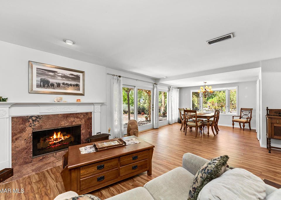 Back on market so now this updated Kevington single story home on a large, usable lot with mountain views can be yours. Home features an updated kitchen with light maple cabinetry, pantry, double oven, 5-burner gas cook top, glass front cabinets and pull-out shelves. Open floorplan with 2 living areas, 2 fireplaces, dining - all open to the kitchen, the hub of the home. Newer windows, French doors and slider, plank vinyl flooring, abundant recessed lighting. Roof replaced. The spacious backyard boasts multiple flagstone patios (perfect for outdoor living areas), an arbor, covered patio structure, storage shed with electrical and multiple fruit trees. Lots of additional parking space in the driveway, plus convenient RV space with accessible electricity.