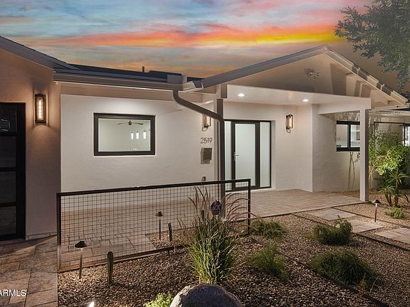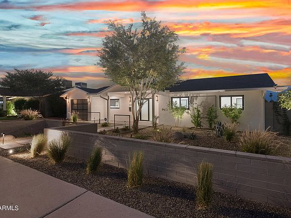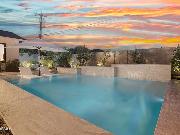 High-end remodel in the Biltmore area complete with 4 bedrooms and 3 bathrooms. Luxury vinyl plank flooring, Quartz countertops, custom cabinetry throughout the house. Custom tiled showers, upgraded windows, and pivoting doors, and stainless steel appliances. Two primary bedrooms with ensuite bathrooms. All closets are upgraded and custom built. Stylish custom desk and library shelves make for a lux at home office. Outdoor spaces feature a brand new Pebble Tec pool with a modern water feature and limestone pool decking. All new landscaping in the front and rear with custom ironwork, outdoor lighting in the front and rear, and an outdoor seating area with a firepit. This upscale garage has built-in storage cabinets and a mini-split A/C unit.