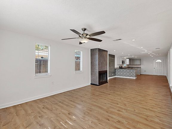 Delightful modern-contemporary home move in ready and priced to sell! Granite countertops, updated kitchen with seating island, recessed lighting throughout, bold modern fireplace, lots of natural light, open concept perfect for entertaining , Laminated flooring in all main areas including all three bedrooms, spacious closets and a breathtaking master bath suite. Bedrooms two and three share a Jack and Jill full bath. HVAC Replaced 2019, Plumping 2020, electrical updated 2021, Fence replaced 2024, Water heater Replaced 2024. There is plenty of parking in the front and back driveway Must See!!