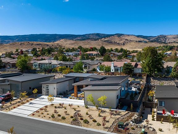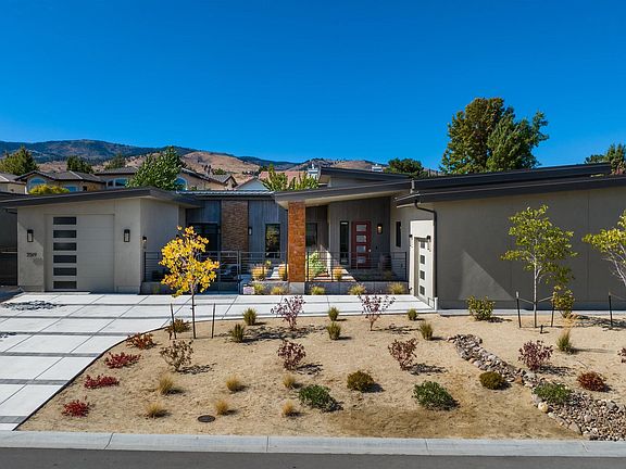 Absolutely stunning single story new construction in the heart of Southwest Reno. This modern luxury home has all the high-end finishes one could want, with 3145 sqft of open concept living space, 4 spacious bedrooms, 4 full bathrooms, front and backyard entertaining spaces and the tandem RV garage, there is space for everyone. Quartz countertops in all wet rooms, hardwood floors, Thermador appliances, wet bar, built in BBQ, water feature, 2 fire pits are allon the short list of chic features, that make this home stand out. Additional notes and recent updates for the detailed buyer; dual climate control HVAC, tankless water heater, paver patios, horizontal slat fencing, new rear privacy fence, custom iron front courtyard fence, elevated viewing deck (iron railing will be installed before sale), triple pane windows, large kitchen pantry, 1200 sqft of garage space with 12' RV door, new window treatments throughout, epoxy finished garages with custom built in cabinetry, high end closet systems in all rooms, gutters and snow cleats for snow load and runoff, mounted TVs in all rooms, smart enabled security system and numerous landscaping updates. Come see for yourself!