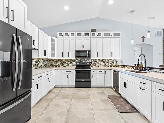 NEW ROOF JUST INSTALLED, w/ transfer of warranty! Move-in ready, 3bd/2b gem of a home. Nestled in a prime location, it features an open floor concept, vaulted ceilings, and expertly remodeled interiors that will leave you breathless. Enjoy preparing meals in a modern kitchen with black stainless steel appliances, 2 1/4 Mitered Edge Qrtz countertops, and a waterfall peninsula design. Porcelain flooring throughout & lavish master bath with his/hers vanity & separate tub/shower. New AC unit from 2018 plus brand new fence installed (2022). Spacious backyard, sun roof and a huge shed for extra storage. This house is minutes from the I-95, FL TPKE, Gatlin, Tradition, Cleveland Hospital, St Lucie West shops, + rated schools including charter schools, and much more. No Fault of Sellter!