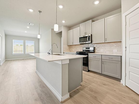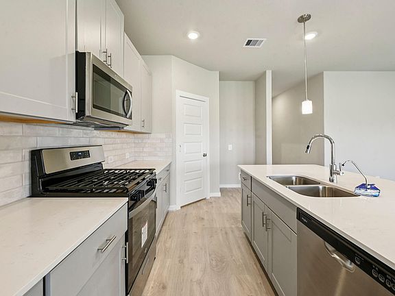 Brand new, energy-efficient home available NOW! Stock up on everyone's favorites with plenty of room in the walk-in pantry.White cabinets with white quartz countertops and grey mosiac backsplash, grey tone EVP flooring and multi-tone carpet. Sundance Cove will have the kids enjoying the future trails, resort-style pool and recreation center. When not at home, indulge in the lake lifestyle with easy access to all the fun at nearby Lake Houston. You won’t need to venture far to major employment centers, shopping, dining, and entertainment. We also build each home with innovative, energy-efficient features that cut down on utility bills so you can afford to do more living.* Each of our homes is built with innovative, energy-efficient features designed to help you enjoy more savings, better health, real comfort and peace of mind.