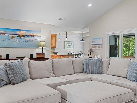 Welcome to your perfect retreat just steps from the fairways! Nestled in a quiet, well-kept neighborhood, this stunning stucco-style home offers the ultimate blend of luxury, comfort, and convenience—mere minutes from the golf course. From the moment you arrive, the curb appeal shines. Rock bed landscaping frames the home with natural elegance, while the side-entry garage adds a clean, unobstructed front view. Step inside to be greeted by soaring vaulted ceilings, accented by a rich wood beam and soft recessed lighting that creates an open, yet cozy atmosphere. The heart of this home lies in the backyard oasis. Whether you’re entertaining or enjoying a quiet evening, the expansive deck with modern cable railing leads you to a charming gazebo—your own peaceful hideaway. Surrounded by beautiful, mature landscaping, it’s a backyard built for both gatherings and serene solitude. With a short walk to the golf course and every detail thoughtfully designed, this home invites you to slow down, breathe deep, and truly enjoy where you live.