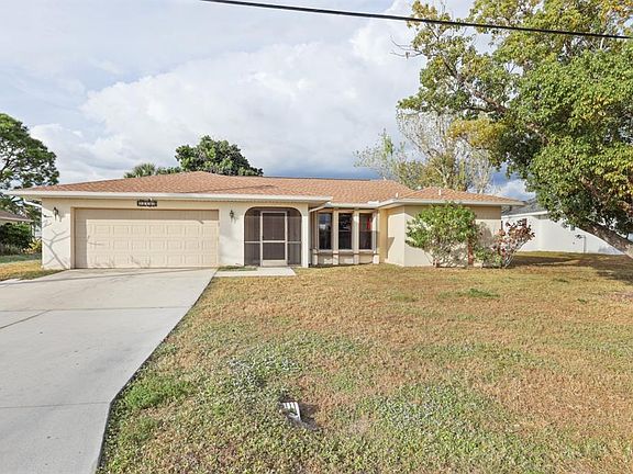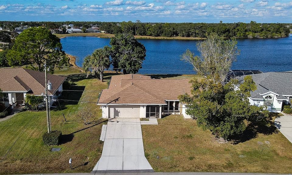 Discover Florida living in this well kept 1987 home located in Deep Creek, a Punta Gorda Isles Community. This three bedroom home features beautiful views of Lake Zappa. On the interior, you will love the split bedroom floor plan with the primary bedroom suite on one side of the home and two guest bedrooms on the other. Perfect for overnights guests and growing families. The guest bathroom that also exits out to the 269 sq ft screened lanai, could double as your future pool bath if a swimming pool is added. All three bedrooms have walk-in closets. Kitchen features upgraded granite counters with breakfast bar. The oversize two-car garage is perfect for extra storage, hobbies, workshop or beach gear. Upgraded easy to close accordion style storm shutters. This home offers the perfect blend of privacy and convenience. Great location, short distance to community park, public boat ramps, three 18 hole golf courses, shopping, dining and all that southwest has to offer. Whether you’re seeking a full-time residence or a winter getaway, this home delivers comfort, charm, and unbeatable views. Roof replaced in 2022. Water heater replaced in 2018. AC replaced in 2017.