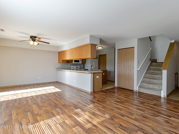 Excellent value! Immediate occupancy allows you to close and be in this home before school starts. Manhattan grade schools and Lincolnway High School. Move in ready! Two story town home freshly painted in current neutral colors. Large open living & dining rooms with laminate wood floors. Patio and back yard access through sliding glass doors in dining room. Kitchen features abundance of cabinets, counter space, island and large pantry. Master bedroom has a huge walk-in closet. Laundry room on the second floor located between the bedrooms and bath. All appliances stay. Two car attached garage that has been finished with added attic space. Close to schools, shopping, metra train, interstate, restaurants, park, bike & walking paths. See this lovely home today!