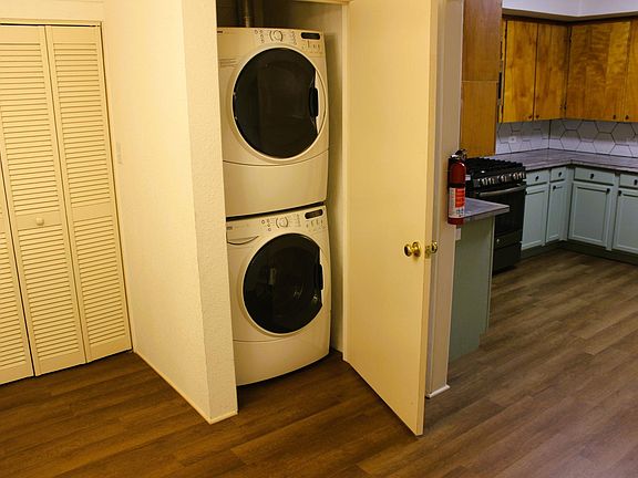 smoke detectors and CO detectors in all bedrooms. Spacious kitchen with ample cabinet space, above stove microwave and high quality tile counter tops. Large stainless steel high end refrigerator. HE large capacity washer and dryer included in home. Natural gas forced air furnace. Large window evaporative cooler. Large 1 car (possible 2 car) covered parking and 1 uncovered parking spots. Close to local restaurants and stores. 30-minute drive to Los Alamos 40-minute drive to Santa Fe.