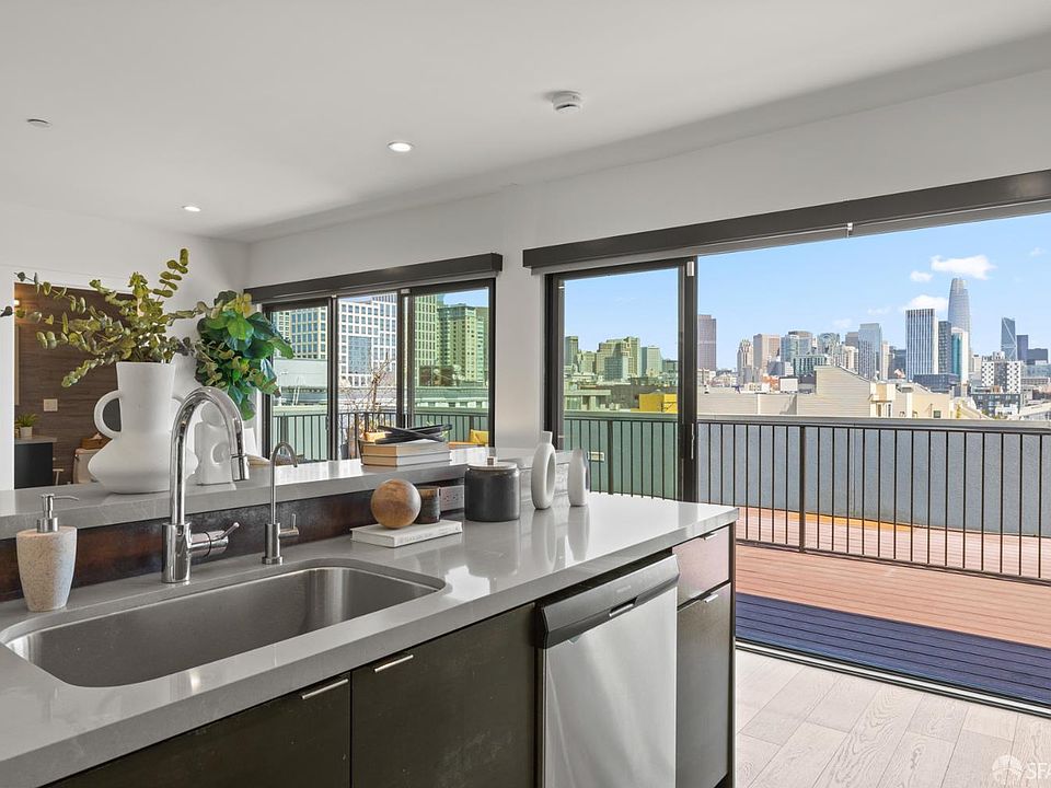 Exquisite 1-bedroom, 1-bathroom Penthouse condo at 252 9th St, Unit #501, in the boutique Sapphire building, San Francisco. This stunning city skyline view home, two sliding doors showcasing breathtaking downtown San Francisco and a huge 189sqft deck/patio deeded to unit perfect for hosting parties and dinners. The modern kitchen boasts a stainless steel Bertazzoni gas cooking range and quartz countertops, complemented by hardwood flooring, an in-unit washer and dryer, and designer bathroom with modern fixtures. Sapphire, with only 15 modern condo residences, offers a rooftop view deck, bike storage and easy commute access throughout the Bay Area. Located in the vibrant South of Market neighborhood, Mid-Market tech/AI hub, enjoy proximity to restaurants, theaters, coffee shops, stores, and public transportation, with close access to the Financial District, Hayes Valley, The Mission, and Civic Center. No parking deeded to unit. Schedule a viewing today!